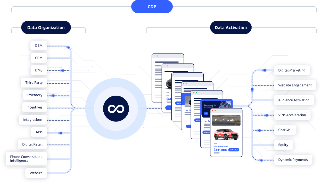 An enhanced CDP is a technology driven platform designed to consolidate siloed dealership data sources and then leverage that data to create automated seamless omni-channel marketing journeys for every individual shopper.