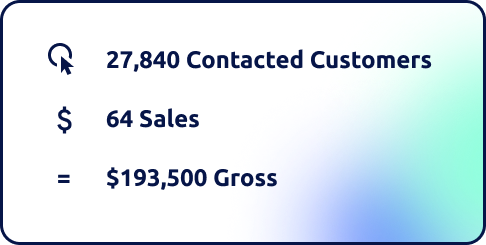 7,496 of the leads contacted by Audience Activation were leads that had previously been marked as lost or dead in the dealership’s CRM. Fullpath’s campaigns transformed 958 of those leads into engaged shoppers, ultimately resulting in 9 sales.