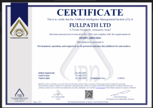 Fullpath is ISO 27001 and ISO 42001 certified, the top international standard of information security and AI governance. This ensures your data is always safe and that you remain in compliance with FTC regulations. To maintain our certification, we commit to regular surveillance audits and recertification audits, continually improving our security measures.